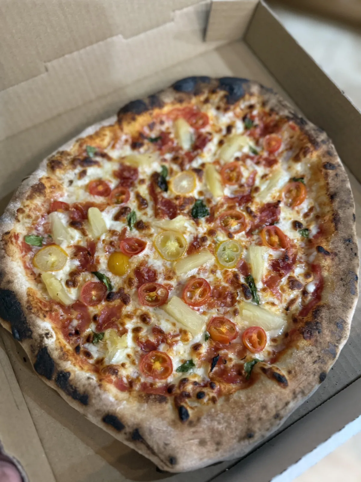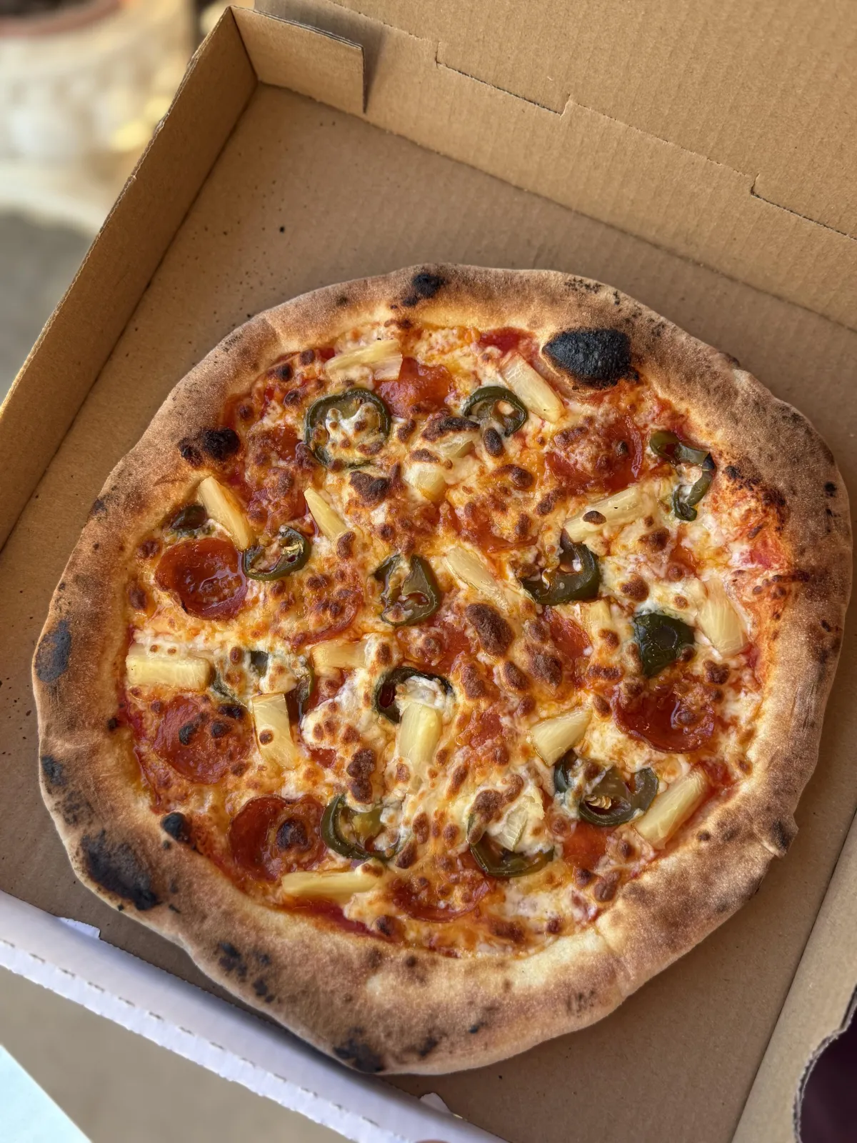 A fiery combo of pepperoni, jalapeños, and sweet pineapple. Spicy, sweet, and bold—just how Milo likes it.