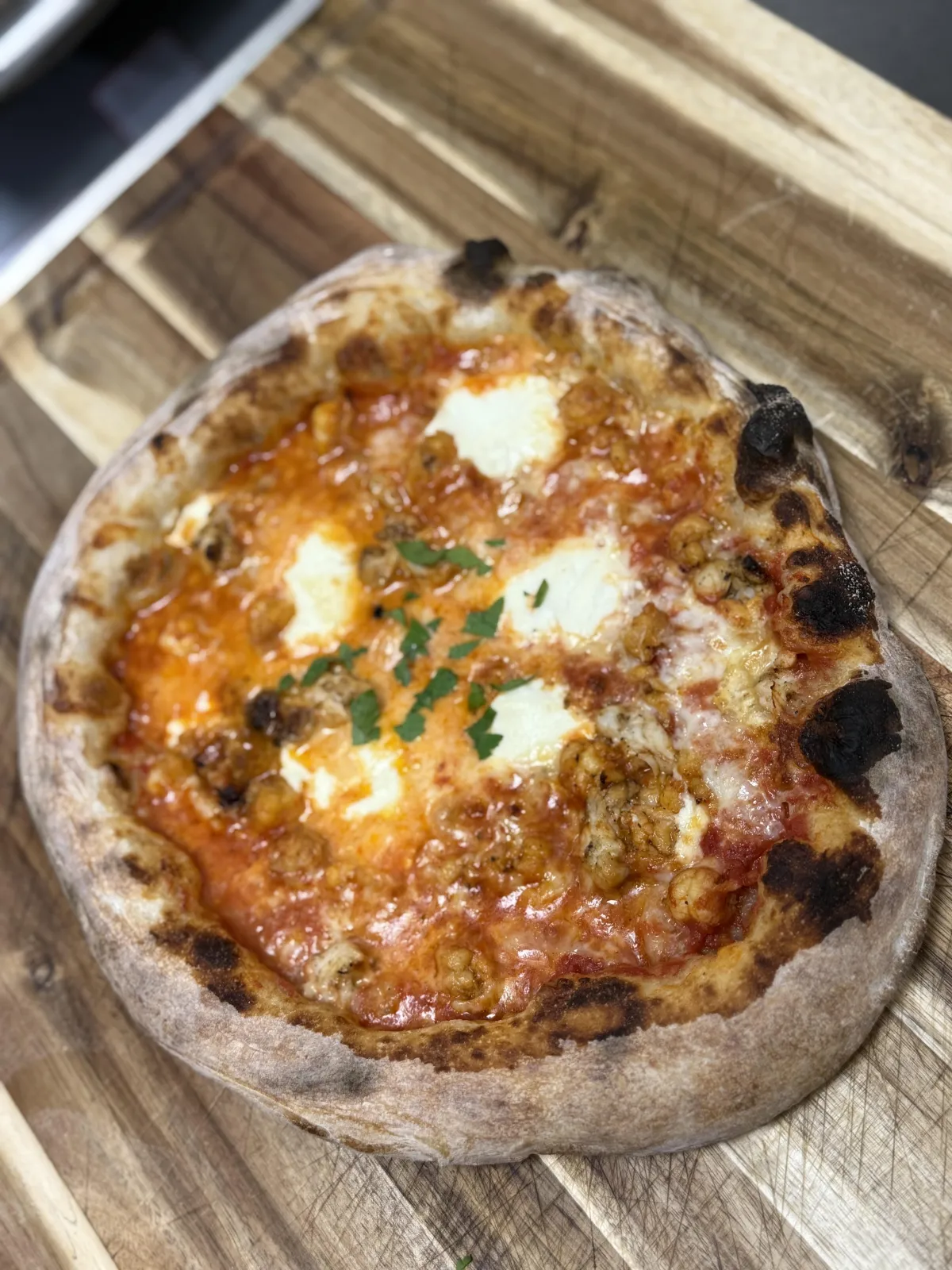 Our four-cheese blend pie. Melty, stretchy, cheesy madness. Nothing more, nothing less.